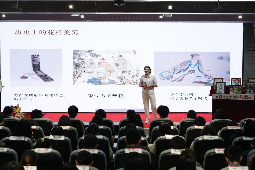 副院长张莉与学生代表沈恩泽、周珂名、张欣蕊等联袂讲授,带领师生从向警予的报告《妇女为什么好装饰》中探讨颜值与文明的关系,重新审视何为真正的美。