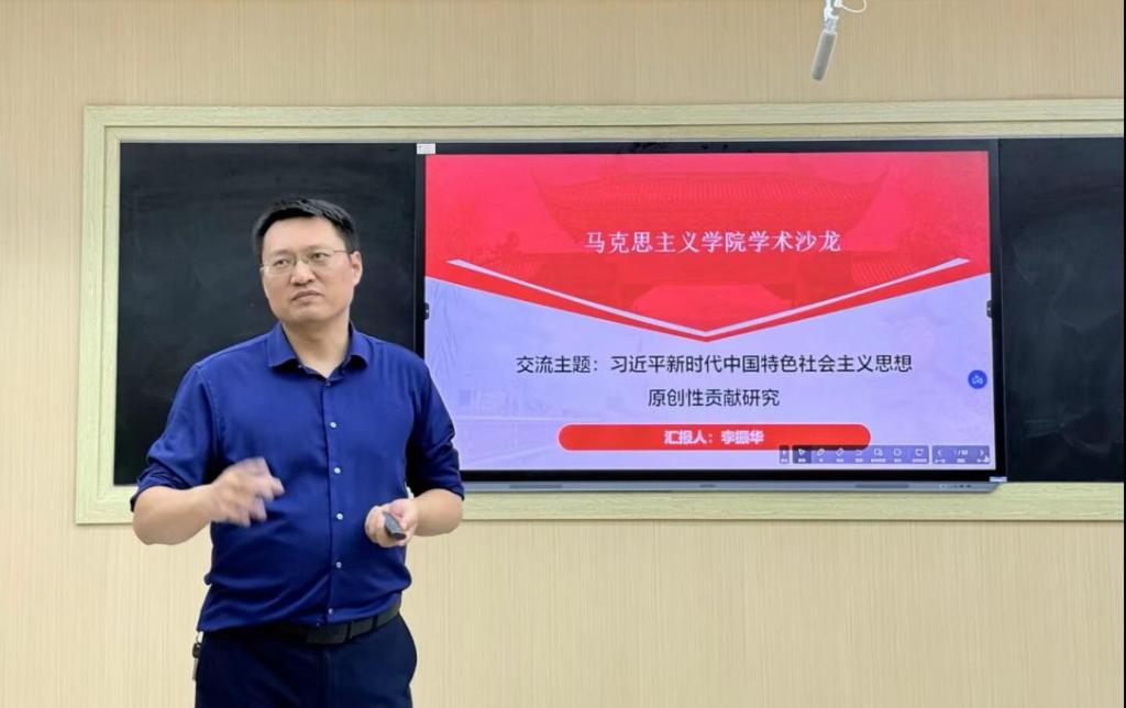 求实导师学术沙龙第一期在东校区16教107教室成功举行。李振华副教授以“习近平新时代中国特色社会主义思想原创性贡献研究”为题作报告,学院60余名研究生参加学术沙龙活动。