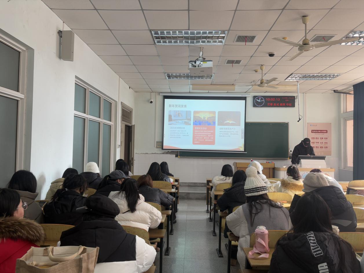 研究生2026年1月政治理论学习活动在13教D-126教室顺利举行。本次活动由蔡坤鹏、倪小艳、邹玲君三位同学依次主讲,2025级全体研究生参加。